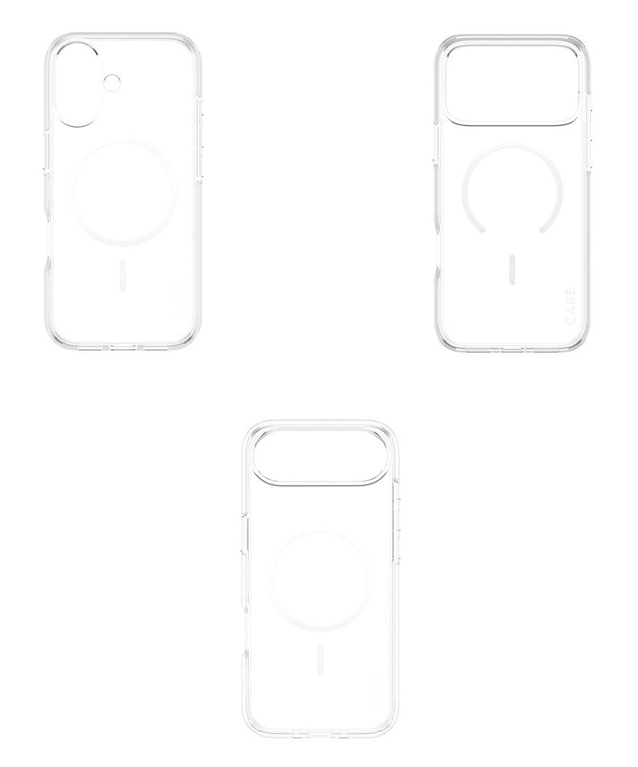 Protection against drops from 4.8 metres, anti-yellowing guarantee, reinforced camera protection, slim and transparent design, ISO 14064 environmental certification.