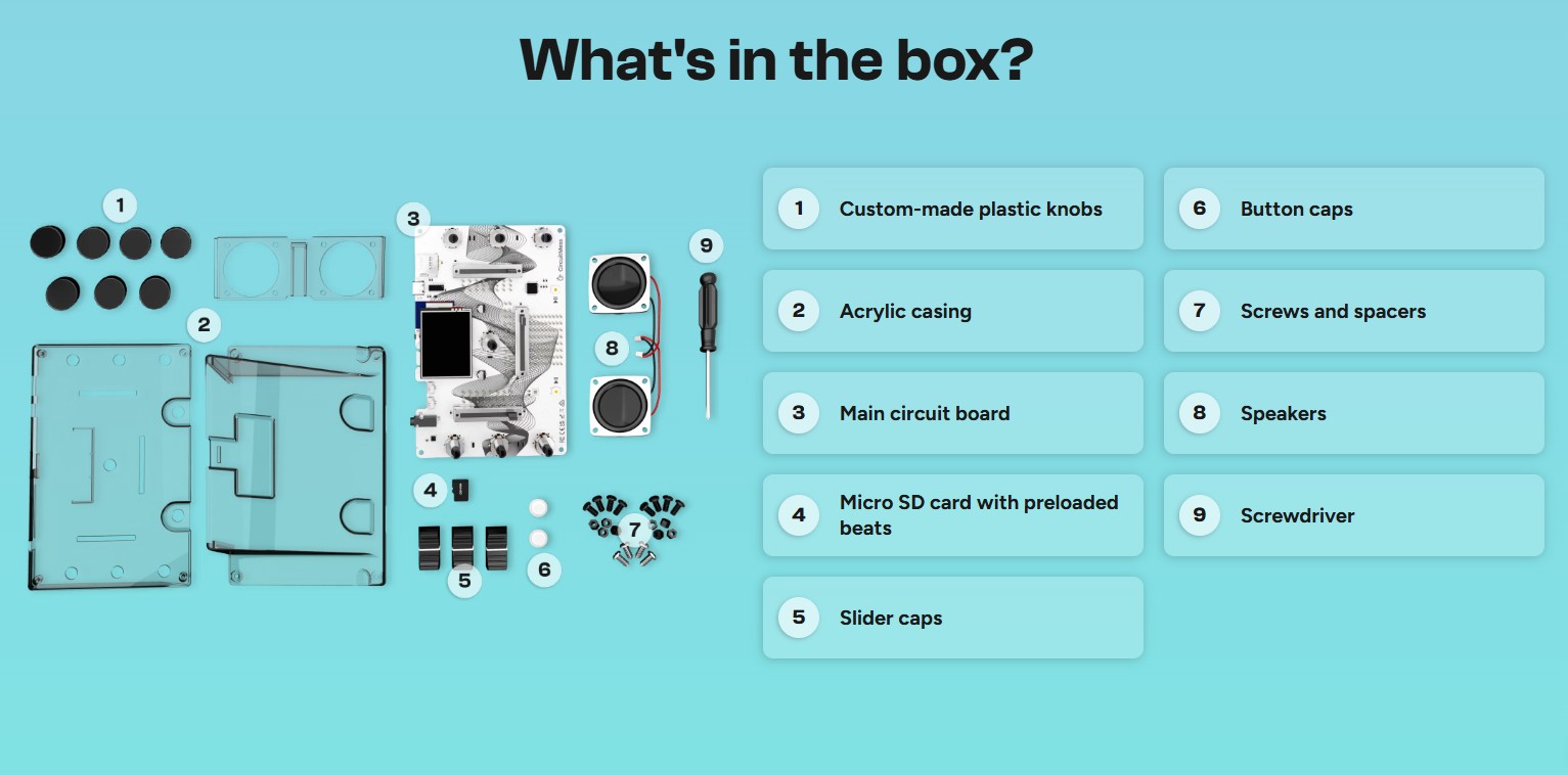 Educational DIY DJ mixing desk, learning about digital sound, guided electronic assembly, interactive music creation, fun STEM approach.