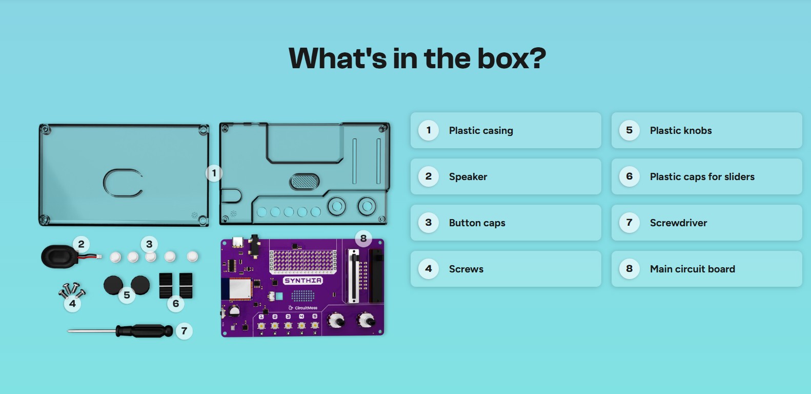 A true sound laboratory to assemble, the CircuitMess Synthia 2.0 allows you to understand how sound is created, transformed and played, while leaving plenty of room for musical and technological experimentation.