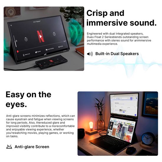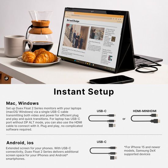 The Duex Float 2 from Mobile Pixels revolutionises portable dual screens. Compact, ultra-thin and magnetic, it easily attaches to your computer to transform your workspace into a powerful dual-screen station, wherever you are. Designed for mobile professionals, it combines power, flexibility and design.