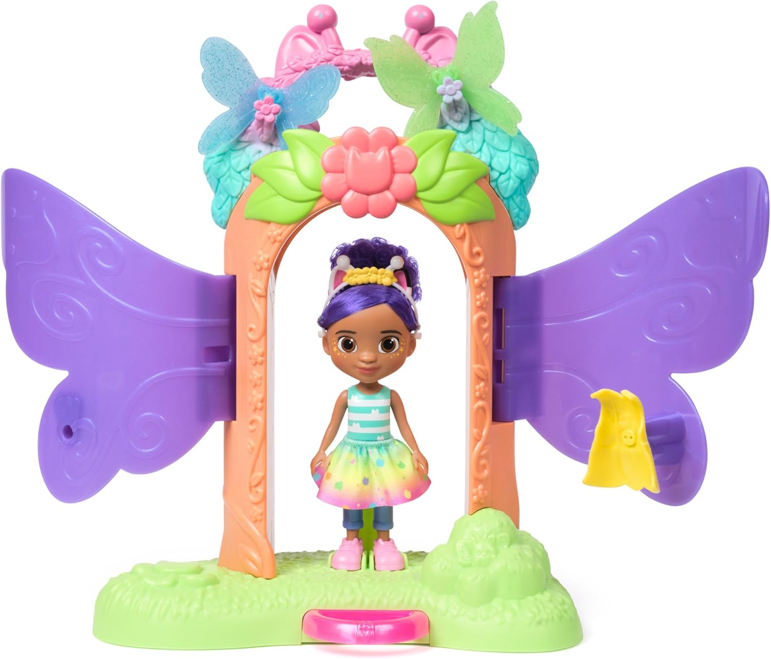 This Gabby’s Dollhouse Fairylandia playset invites children into a magical world full of creativity and imagination. Inspired by the animated series, it features a fun transformation mechanism that turns Gabby into a real fairy.