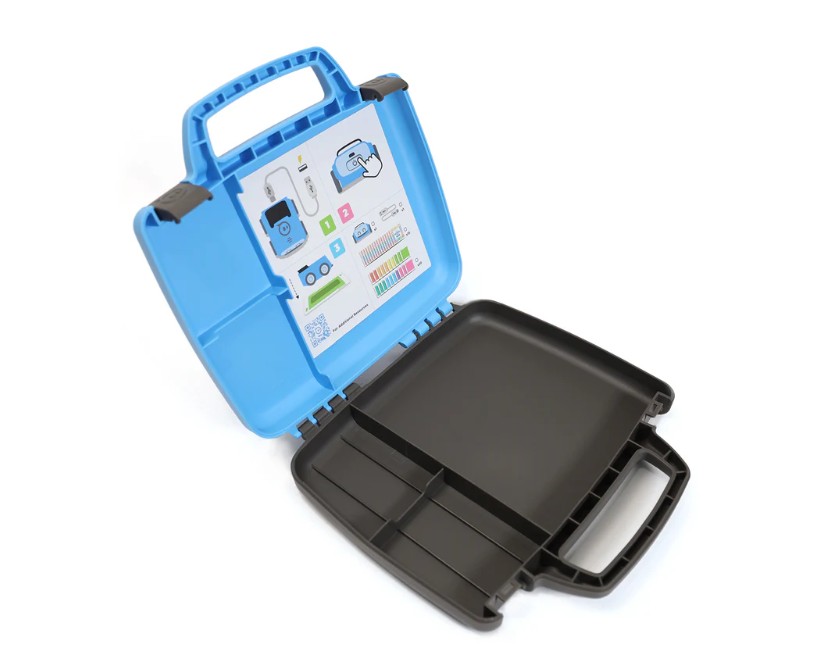 Hard protective case, storage for an Indi robot and accessories, quick organisation of equipment and secure transport for educational activities.