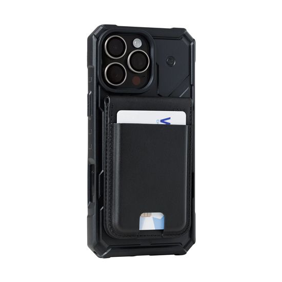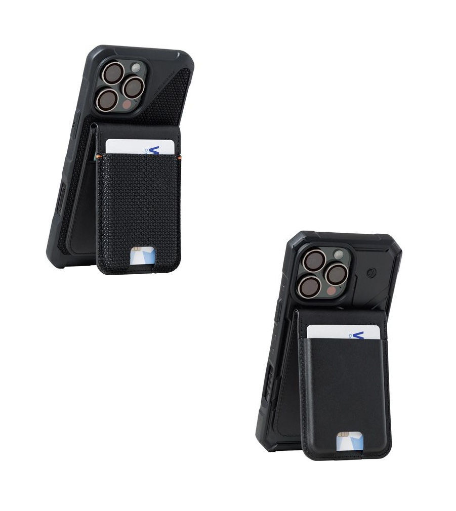 High-strength Kevlar®, compact design, MagSafe attachment, integrated kickstand, capacity for up to 6 cards, available in Black or Kevlar Black.