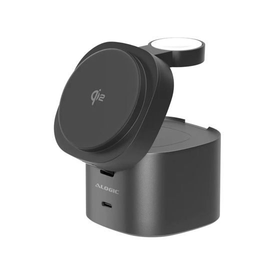 A-LOGIC's PowerPod revolutionises wireless charging with its next-generation Qi2 technology. This 4-in-1 charger simultaneously charges your iPhone, Apple Watch, AirPods and a USB-C device, while offering a sleek, foldable design. Designed for Apple and Android users, it delivers up to 15W of power for MagSafe iPhones, ensuring fast, stable and effortless charging wherever you are.