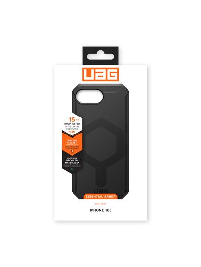 The UAG Essential Armor MagSafe case for iPhone 16e combines slimness and robustness in an ergonomic design designed for everyday use. With its lightweight construction and integrated magnetic module, it provides effective protection while remaining fully compatible with your MagSafe accessories.
