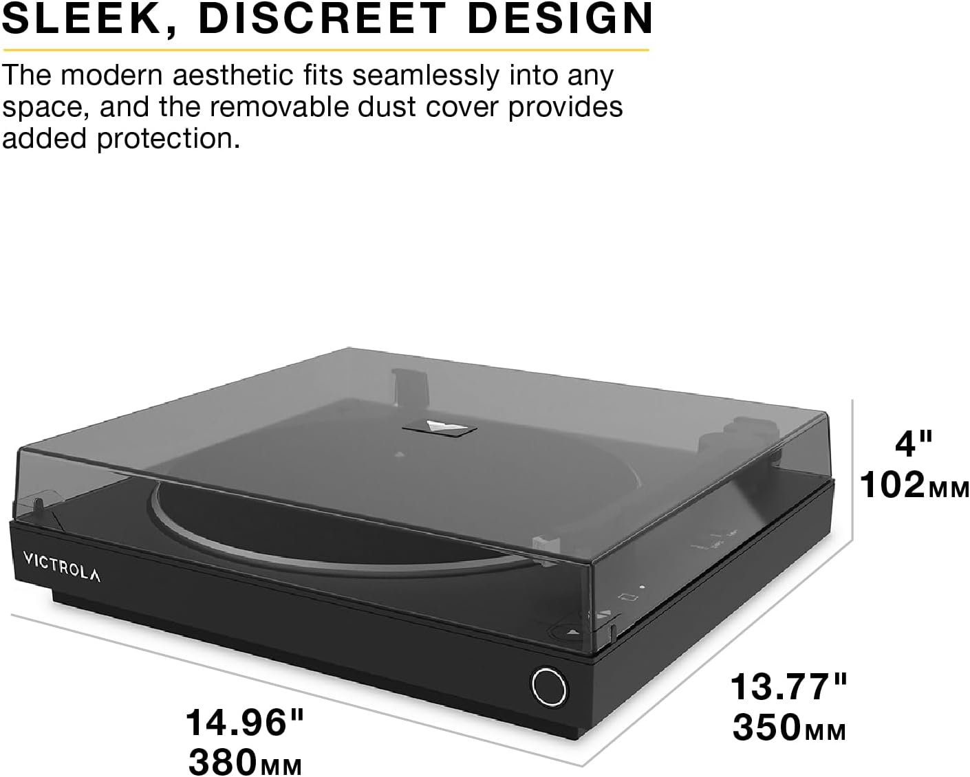The Victrola fully automatic turntable has been designed to offer a smooth, intuitive and modern listening experience. With its single-button operation, it allows you to enjoy the warm sound of vinyl without any complicated handling, at 33 or 45 rpm.