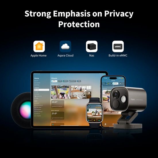 Confidentialité renforcée : HomeKit Secure Video, stockage eMMC crypté et chiffrement de bout en bout.