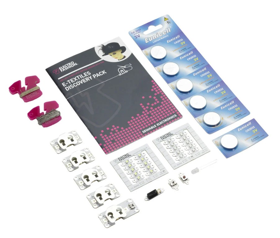 L’Electro-Fashion Discovery Pack est un kit complet pour découvrir l’univers des e-textiles et intégrer lumière et interactivité dans des créations textiles. Il regroupe une sélection de modules cousables permettant de réaliser rapidement des projets lumineux simples ou plus élaborés.