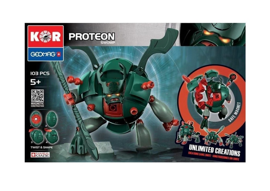 Le Geomag KOR Proteon Swomp invite les enfants à développer leur créativité en construisant une infinité de figurines différentes grâce à ses pièces magnétiques.