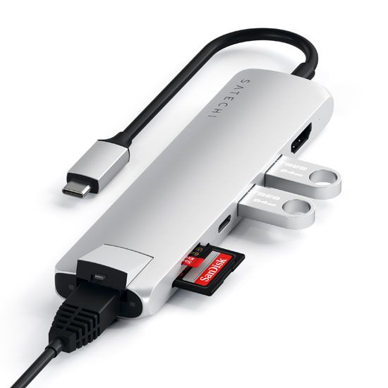 Emportez votre espace de travail partout avec vous grâce au hub USB-C Slim avec Ethernet de Satechi. Compact et élégant, il combine sept ports essentiels dans un seul appareil.