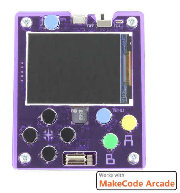 Console programmable éducative, apprentissage du code, MakeCode Arcade, écran couleur 2,4”, boutons physiques, vibration haptique, STEM dès 8 ans.