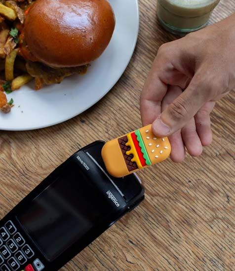 Paiement sans contact sécurisé, limite de 50€, suivi des dépenses, recharge instantanée, blocage à distance, coques interchangeables, autonomie progressive.