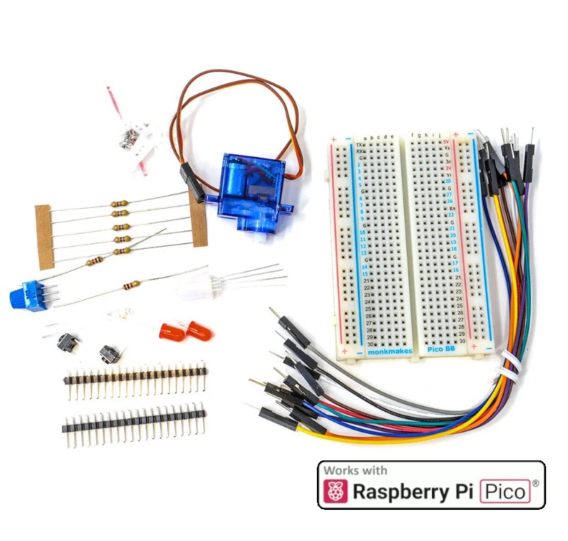 Le Monk Makes Electronics Kit 1 for Pico Lite Edition est un kit électronique accessible et progressif conçu pour apprendre les bases de l’électronique et du codage avec la carte Raspberry Pi Pico. Il permet de manipuler de vrais composants et de comprendre concrètement comment fonctionnent capteurs, résistances et actionneurs.