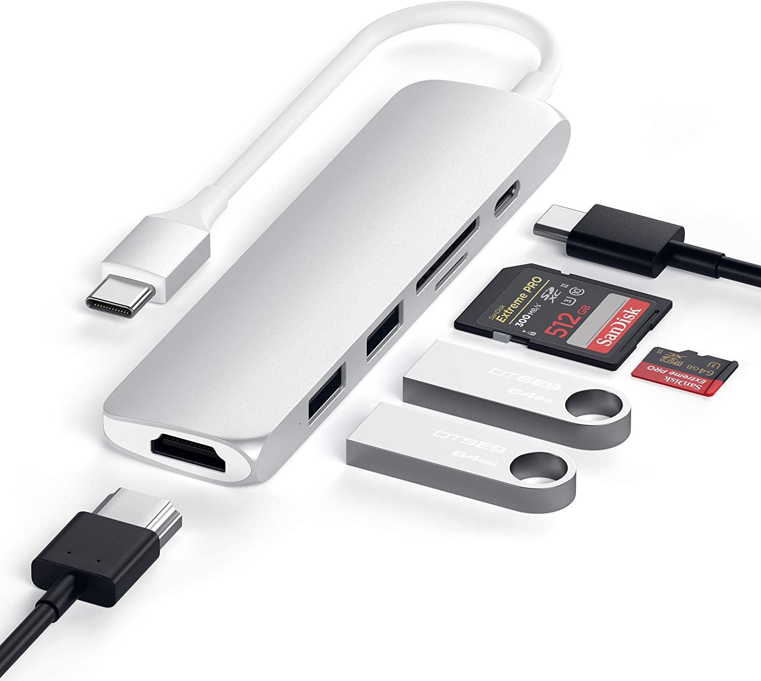 L'adaptateur USB-C multiport V2 Slim combine vos ports principaux avec un dispositif de port d'extension mince et design en aluminium. Le convertisseur est petit mais puissant, avec un lecteur de cartes SD et microSD, USB-C Power Delivery (PD), 4K HDMI et USB 3.0, tous accessibles via une seule connexion USB-C. Gardez-le sur votre bureau ou emportez-le avec vous lorsque vous êtes en déplacement.