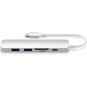 Poids 50 g, 1x USB-C PD 60W, 1x HDMI 4K (30Hz), 2x USB-A 3.0 (jusqu'à 5Gbps), 1x Lecteur de carte SD, 1x Lecteur de carte Micro SD (jusqu'à 104 Mbps, supporte UHS-1/SD/SDHC/SDXC) et boitier en aluminium.