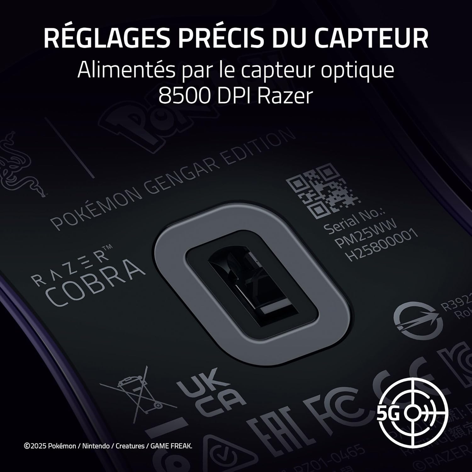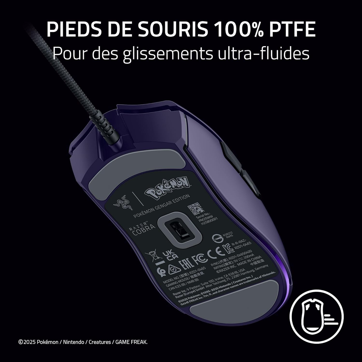 La Razer Cobra Gengar Edition est une souris gaming filaire conçue pour allier précision, réactivité et design iconique Pokémon. Inspirée par Gengar, elle associe une conception ultralégère à des technologies de pointe pour offrir un contrôle fluide et fiable, même lors des sessions de jeu les plus intenses.
