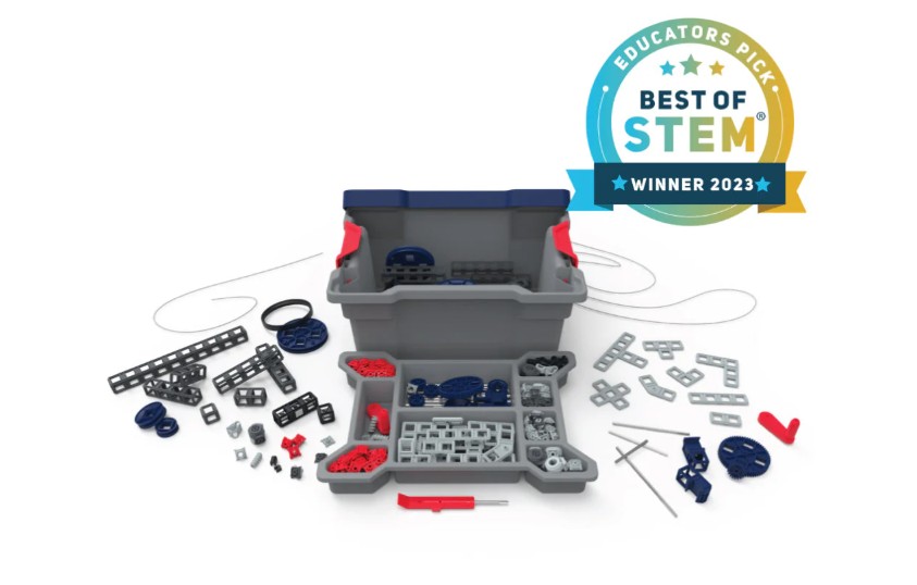Kit de prototypage mécanique avec 320+ pièces, défis d’ingénierie, ressources pédagogiques numériques et compatibilité CAD pour SolidWorks, OnShape et fichiers STEP.