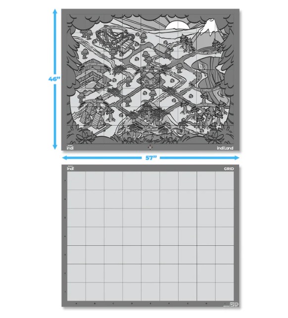 Tapis éducatif double face pour robot indi, activités de programmation sans écran, cartes lettres et mots pour travailler lecture, vocabulaire et construction de phrases.