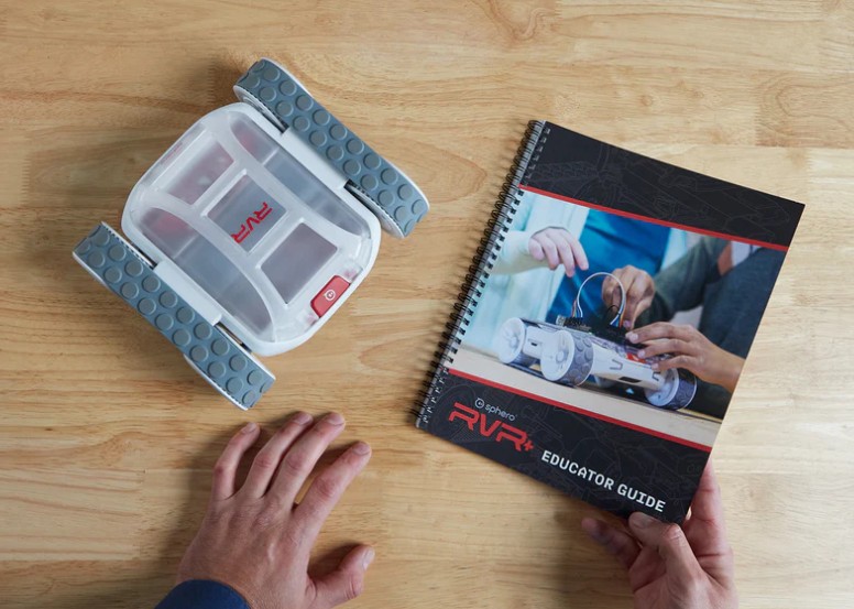 Guide pédagogique pour robot Sphero RVR+, activités de robotique et de programmation en classe, huit leçons interdisciplinaires pour élèves à partir de 11 ans.